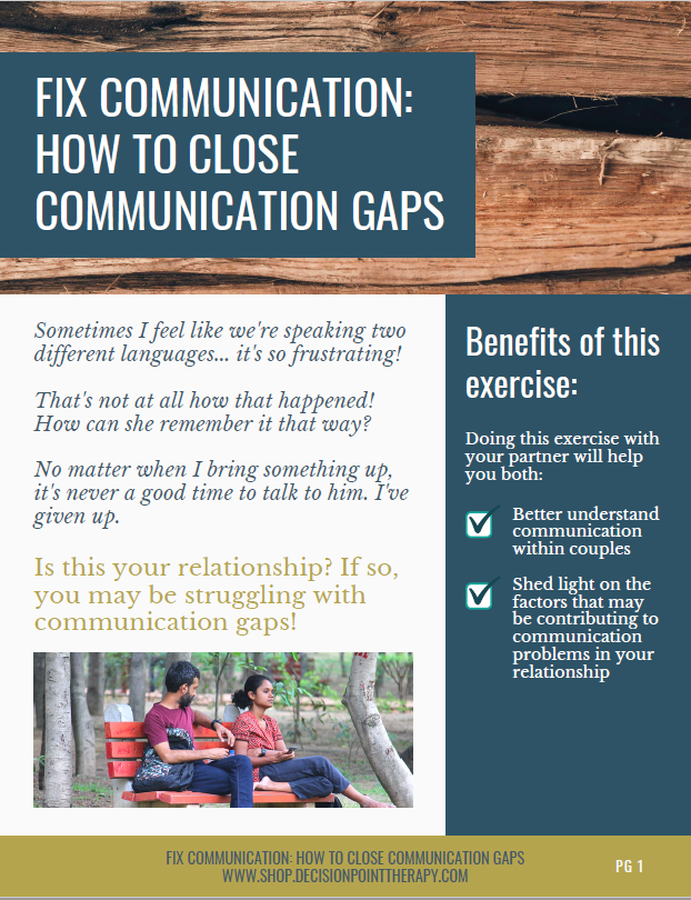 Start fixing your relationship communication TODAY! Get this 20-page guide with exercises you can do alone or with your partner.Â